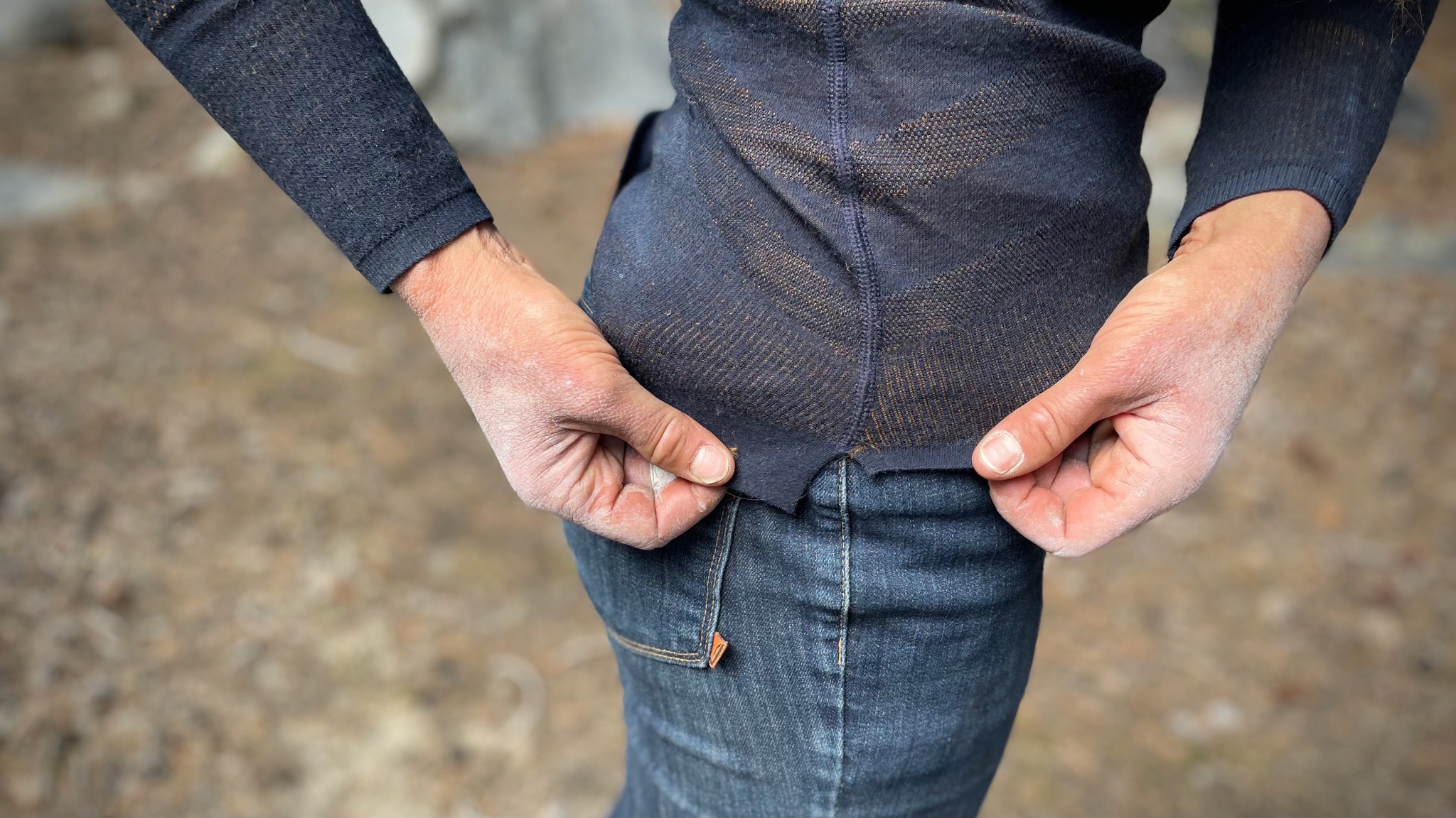 We assess each top to determine which fabric offers the coziest, most versatile fit. We record our notes while we hang around the campfire or enjoy a rest day. We also evaluate how the fabrics feel next to our skin after several days of wear without washing, so we can determine whether their feel changes over time. In general, we love Merino wool tops with a touch of nylon or spandex simply because they offer the maximum level of comfort.