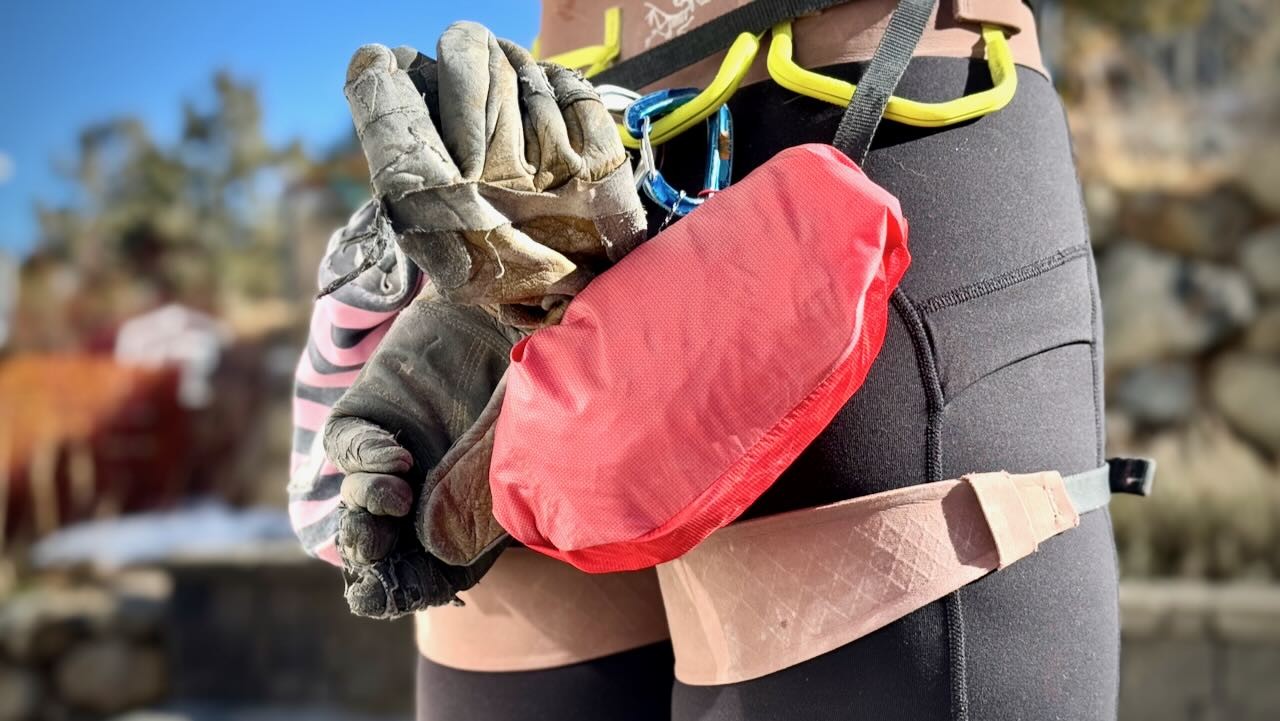 Weighing only 6.2 ounces and easily packing into its own pocket, the OR Helium is the perfect option for minimalists who are after a lightweight, emergency layer that's easy to stow in a pack or on the back of a harness. Credit: Trish Matheny