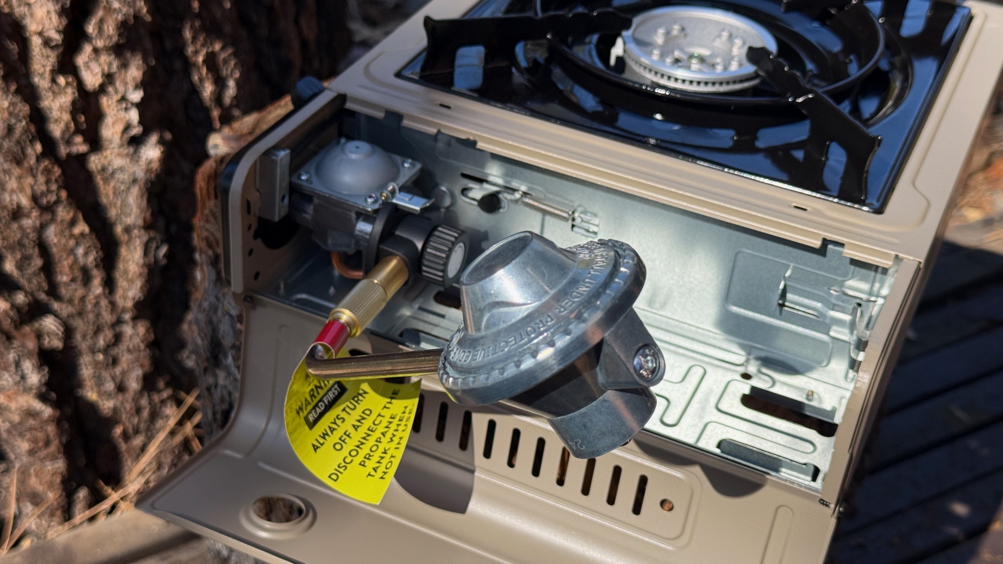 Using the propane attachment is a bit more of a hassle, but not a deal-breaker. The biggest question is where to store the adapter. We tried storing it under the burner, but it does not fit easily and even causes the fuel line to become misaligned (see below).