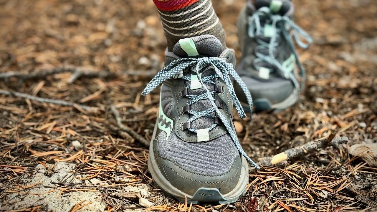 The Saucony Excursion TR17 is more of a running shoe design than a hiking shoe. It is also the lightest shoe that we tested. Unfortunately, you sacrifice a ton of performance and structure in exchange for less weight under foot. Credit: Trish Matheny