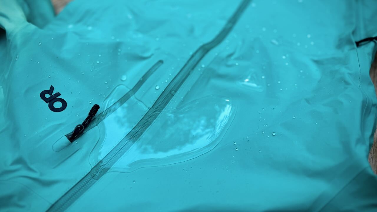 The OR Aspire 3L features a unique dual zipper pit vent that runs from the bicep all the way down to the bottom hem of the jacket. Not only does this ventilation exceed all of its competitors, measuring a whopping 20 inches, but it allows you to customize your desired breathability. This is not without some limitations, as these massive openings do not perform well in high winds and heavy rainfall without getting your under layers wet. The fabric also lacks breathability when all the vents and zippers are fully closed. So while options like the Downpour and Ozonic provide better breathability, the Aspire 3L is the fastest to vent heat once the vents are unzipped, thanks to their huge openings.